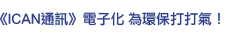 全球每年約有三千萬公頃的森林在地球上消失,面積相等於290個香港。節約用紙,減少砍伐樹木,實在刻不容緩! 「全人發展中心」全力支持環保,《ICAN聯繫通訊》已由2009年6月起全面電子化,為注重心靈健康的您送上源源不絕的精彩資訊。內容包括:專家文章、中心優惠、心理健康小貼士等!